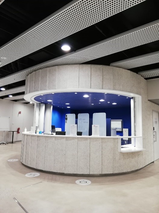 Onneksi punainen väri aulapalvelun luona kiinnittää lopulta monien huomion. Aulapalvelun työntekijät ovatkin useimpien asiakkaiden ensimmäinen kontakti kampukselle saavuttuaan. Usein myös auloissa liikkuvat opiskelijat opastavat HyMy-kylän asiakkaita oikeaan suuntaan.