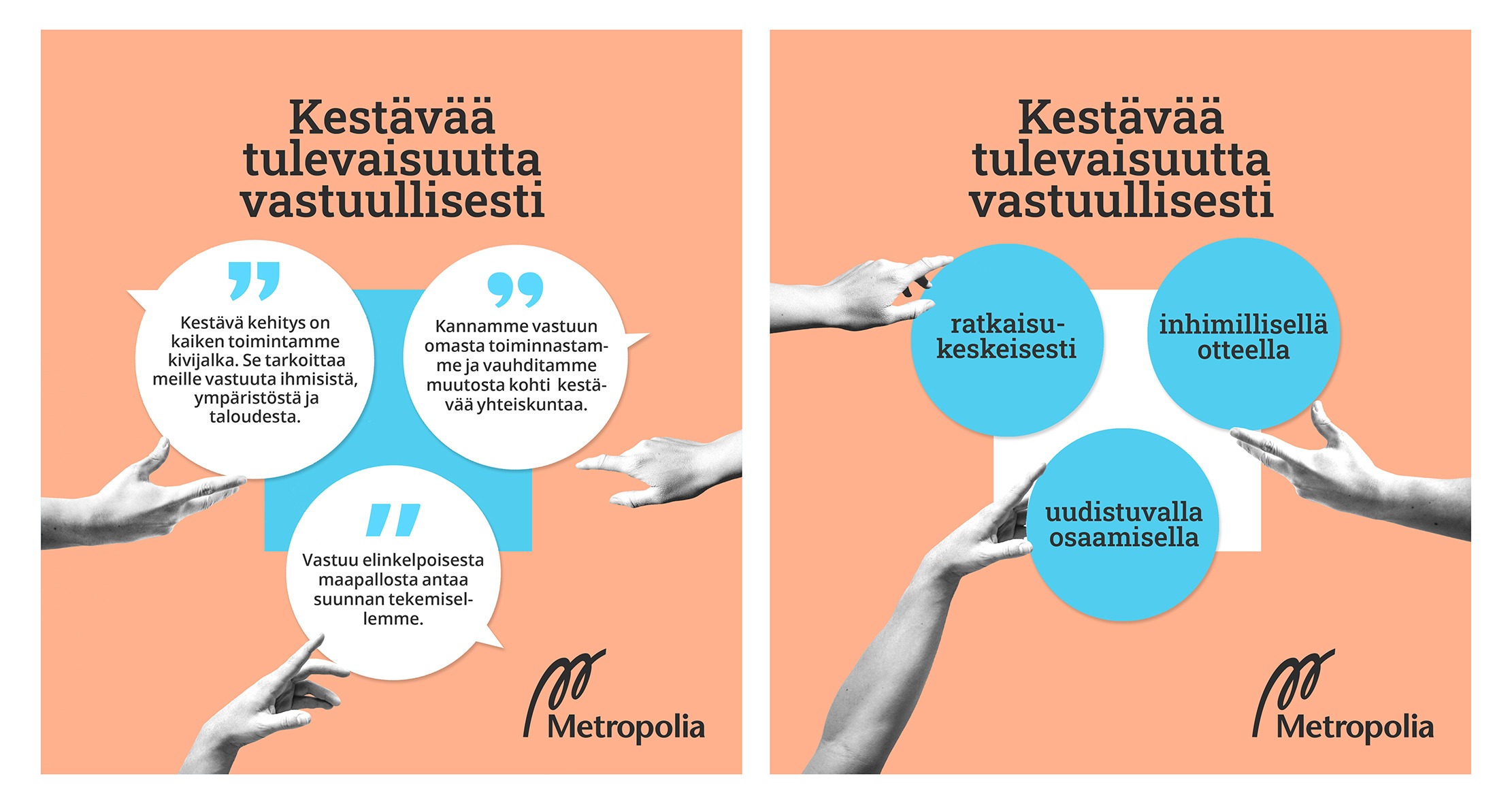 Kriittisiä ääniä kuultiin tämän prosessin aikana vain muutama. Niissäkin huoli liittyi arvoperustan käyttötarkoitukseen ja lieveni ainakin osin viestillä siitä, että seuraavana askeleena luodaan Metropolialle sen ensimmäinen eettinen toimintaohjeisto arjen tekemisen tueksi.