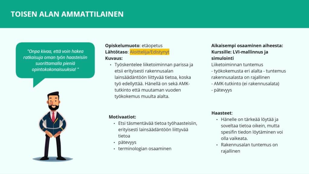 Kuva 2: Esimerkki oppijapersoonasta, Toisen alan ammattilainen.