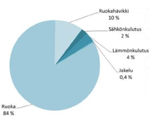 Ruokapalveluiden hiilijalanjäljestä 84 % muodostuu ruuan alkutuotannosta ja 10 % hävikistä (13) Päästökuormituksen näkökulmastakin suurin merkitys on siis tarjotulla ruualla, joten planetaarisen ruokavalion valinta on vaikuttavinta kuormituksen vähentämiseksi. Vaikka hävikin osuus hiilijalanjäljestä on vain 10 %, siihen kuitenkin voidaan vaikuttaa suhteellisen helposti. Liharuuista syntyvä hävikki on määrällisesti pieni, mutta sekä hinnan että päästökuorman vuoksi se on merkittävämpi kuin esimerkiksi kasviksista syntyvä –määrällisesti suurempi – hävikki. (12)