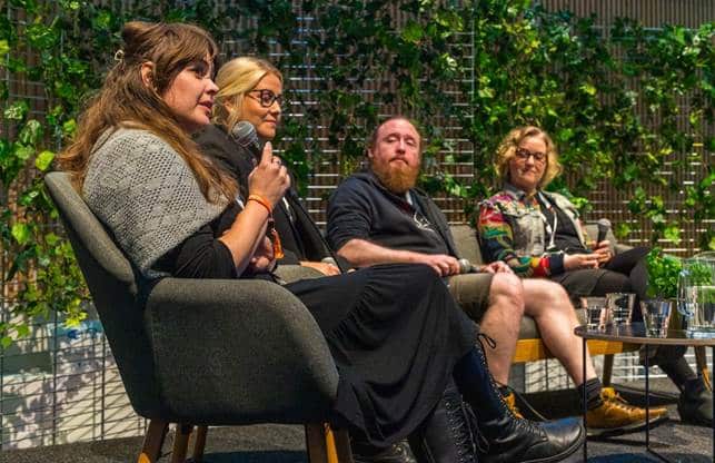 Musiikki ja Median paneelikeskustelussa syvennyttiin siihen, mitä Web3 tarkoittaa musiikkialan näkökulmasta. Vuoden 2017 jälkeen Web3 suurin hype tuntuu laantuneen, mutta koneisto ei ole pysähtynyt, päinvastoin. Uuden ajan internet haastaa musiikkialaa ja tuottajia kysymään: miten voimme olla valmiita? Puheenvuoroissa vilisivät termit: NFT (Non Fungitable Token), minttaus, kryptovaluutta ja älysopimukset. Animal Mode Duo:n artistit Eero Ekebom ja Jenni Sainio jakoivat kokemuksiaan ensimmäisen musiikkikkappaleen NFT minttauksesta (asia kirjataan ensimmäistä kertaa lohkoketjuun) Audius -jakelukanavalle. Puheenvuoroista kävi ilme, että mahdollisuuksia reilumpaan ansaintalogiikkaan muusikoiden näkökulmasta on olemassa, mutta toistaiseksi musiikin julkaiseminen on vielä vaivalloista ja aikaa vievää. Web3 ympäristössä toimiminen vaatii valppautta ja kouluttautumista, mutta ennen kaikkea valtakunnallisia verkostoja tiedon jakamiseksi ja kollegiaalisen tuen vuoksi.