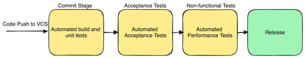 Figure 1. Example of a Deployment Pipeline (Vainio 2023, picture modified from Farley & Humble 2010).