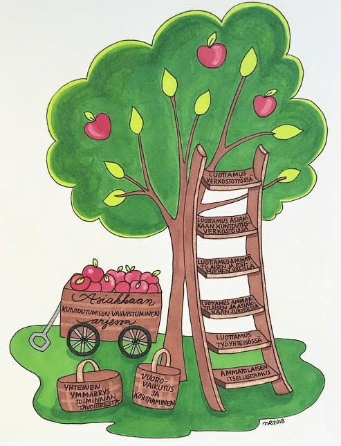 Asenteet ja toimintatavat istuvat tiukassa, mutta se ei ole syy olla uskaltamatta päästää irti vanhasta ja antaa tilaa uudelle. Kyse on rohkeudesta avoimuuteen ja rehellisyyteen, kriittiseen ajatteluun, kokeiluihin sekä epäonnistumisiin. Tarvitaan aikaa ja tilaa rakentaa luottamusta. On hyvä aloittaa itsestään, pohtia vastavuoroisen luottamukseen perustuvan suhteen rakennuspalikoita oli sitten kyse asiakkaasta, työyhteisöstä tai työntekijän ja esimiehen välisestä luottamuksesta. Jokainen aloittaa kuitenkin itsestään.