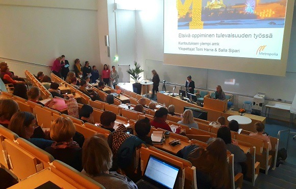 Kirjoittajat: Nea Vänskä, lehtori, Metropolia AMK Salla Sipari, yliopettaja Metropolia AMK Mitä on hyvinvointi tulevaisuuden työssä? Miten uudistuvaan osaamistarpeeseen vastataan kuntoutuksessa? Metropoliassa kokoontui 8.3.2018 Hyvinvointi tulevaisuuden työssä - Kuntoutumisosaamisen seminaarissa auditorion täydeltä kuntoutuksen alan asiantuntijoita, tutkijoita ja kehittäjiä pohtimaan ja kehittämään näitä teemoja. Erinomaiset esitykset avasivat näkymiä sosiaali- ja terveydenhuollon toimintaympäristön moninaisiin muutoksiin, toimintatapojen uudistamisen mahdollisuuksiin ja haasteisiin (ohjelma linkkinä: ). Miina Sillapää säätiön toimitusjohtaja Eija Sorvari avasi kuntoutuksen uudistamiskomitean keskeisimpiä asioita. Hän totesi, että asiakkaiden monista erillisistä suunnitelmista tulisi edetä yhteen kattavaan asiakassuunnitelmaan. Tässä kuntoutus nivoutuu osaksi kokonaisuutta asiakkaan työ- ja toimintakyvyn vahvistamiseksi arjessa. "Suomi on yksi maailman nopeimmin vanhenevista väestöistä" totesi terveydenhuollon erikoislääkäri Teppo Heikkilä. Heikkilä painotti, että työn ja osaamisen muutostarpeissa korostuu työ- ja toimintakyvyn kuntoutusosaaminen yhtenä keskeisenä alueena. Hän haastoi toimintatapojen kehittämiseen esimerkiksi jakamalla tehtäviä joustavammin eri ammattihenkilöille. Tällaisia joustavia ja innovatiivisia ratkaisuja esitteli toimitusjohtaja Timo Lappi Heltti oy:sta. Näitä olivat muun muassa etäohjauksella tapahtuva terveyden edistäminen ja/tai sairauden hoito, pallomeriorganisaatio ja neuvonpito. Lappi kehotti konkretisoimaan organisaation arvot ja hyödyntämään niitä peilinä toiminnan suuntaamiseksi arjessa. Hän kuvasi, että "hyvä toimitusjohtaja on kuin komposti". Kompostin tavoin toimitusjohtajan tehtävänä on ravita organisaation oppivaa ja reflektoivaa toimintaa. Espoon sairaalan kuntoutuspäällikkö Anna Troberg konkretisoi muutoksessa kehittämistä Espoon uuden sairaalan kehittämisprojektien kautta. Kyky katsoa riittävän pitkälle tulevaisuuteen ja laatikon ulkopuolelta, keskeneräisyyden sietäminen, rohkeus kokeiluihin, ymmärrys muutosvastarinnan myönteisistä puolista ja muutokseen motivoinnista sekä mahdollisuus kehittää omaa työtä mielekkääksi ovat keskeisiä hyvinvointia tuovia tekijöitä, sanoitti Troberg. Hän ohjeisti myös, että muutosähkykin on tunnistettava. Tällöin on keskityttävä mielekkäiden toimintatapojen vahvistamiseen perustoiminnassa, painotti Troberg. Heli Ahonen Toimiva Oy:stä totesi, että yhä useammin olemme hyvin kompleksisessa tilanteessa arkityössä. Sen sijaan, että työn analyysi olisi valmiiksi pureskeltu, joudumme itse esittämään kysymyksen "mistä työssä on kyse". Oppiminen työtä tekemällä ja työn tekeminen oppimalla nousevat työntekemisen keskiöön, kun työn selkeys ja ennakoitavuus vähenee. Työntekemisen tapojen tulisikin mahdollistaa oppimishyppyjä, jolloin voitaisiin vastata yllättäviinkin tilanteisiin, kertoi Ahonen. Jatkuvan oppimisen rinnalla työidentiteettiä uudistetaan ja rakennetaan jatkuvasti. Luomalla työyhteisössä tilaisuuksia rakentaa työidentiteettiä tarpeita ennakoiden ja oman mielenkiinnon suuntaisesti on tärkeää työhyvinvoinnin kannalta, sen sijaan, että kyseessä olisi välttämätön muutos vasta" pakkoraossa". Työhyvinvoinnin vahvistamiseksi myös kuntoutuksessa tarvitaan työtapoja, jotka vastaavat työelämän kompleksisuuteen, pohti Ahonen. Elisa Mäkinen (yliopettaja Kuntoutuksen YAMK- tutkinnossa) toi esille, että työhyvinvointi realisoituu aina suhteessa työhön ja tällöin mukana on paitsi työntekemisen tavat, mutta myös kokemukset ja tunteet. Kokemus työn merkityksellisyydestä on työhyvinvoinnin näkökulmasta keskeinen tekijä. Yksilöityminen työn rakentumisessa ja kehittämisessä organisaation toimintana on tärkeää, totesi Mäkinen. Työssä vaaditaan yhä enemmän ominaisuuksia, jotka luovat turvallista, luottamuksellista ja empaattista työn tekemisen maailmaa: myötätuntoa, tunneälyä, kiitoksen antamista. Kyky myötäelämiseen ja myötätuntoon, tunne- vuorovaikutus- ja motivointitaidot ovat tulevaisuuden huippuosaamisen ydintä, kuvasi Mäkinen oivaltavasti. Päivän liikuttavin hetki todistettiin, kun yleisö taputti Elisa Mäkisen esityksen jälkeen seisaallaan 40-vuotisen uransa päättävän huippuosaajan kunniaksi. Monissa päivien esityksissä nousi esille uusien digitaalisten ratkaisujen hyödyntäminen välineinä mahdollistamaan työntekemistä paremmin ja vahvistamaan työhyvinvointia. Uuden teknologien käyttöönotto kuten muutkin muutokset työssä haastaa aina ensin pois rutiineista. Digiratkaisujen haltuun ottamisen ohella tulevaisuudessa vahvistuvia ammattihenkilöiden osaamisen tarpeina kuntoutuksessa nähtiin ammattilaisen osaaminen toimia rinnalla kulkijana ja rakentaa kuntoutujan toimintakykyä arjessa vahvistavia kumppanuuksia verkostomaisessa toimintaympäristössä. Seminaarin puheenvuorojen kautta jäsentyi ajatus, että kompleksisten tilanteiden ratkaiseminen vaatii oppimishyppyjä ja moninaisen osaamisen yhdistelyä ja integrointia yhä laajemmassa verkostossa. Seminaarin asiantuntijoiden puheenvuoroissa korostui muutoksen pysyvyys ja sen kerroksisuus. Arkeen kuuluu monessa vaiheessa olevia erilaisia ja yhtäaikaisia muutosprosesseja. Muutosprosesseja kuvastaakin enemmän verkkomaisuus kuin lineaarisuus, Ahonen totesi. Jatkuva ammatillisen osaamisen kehittymisen tarve vastuuttaa organisaatioita henkilöstön oppimista mahdollistavan kulttuurin ja työntekemistä jatkuvasti reflektoivia ja uudistavia toimintatapoja. Seminaari juhlisti myös Kuntoutuksen ylemmän ammattikorkeakoulun 10-vuotista taivalta kuntoutuksen asiantuntijoiden kouluttajana ja kuntoutuksen kehittäjänä. Kuntoutuksen ylemmän korkeakoulututkinnon opiskelijat olivatkin osana päivän ohjelmaa kiteyttäen työidentiteetin rakentumista ja oppimista tulevaisuuden työss