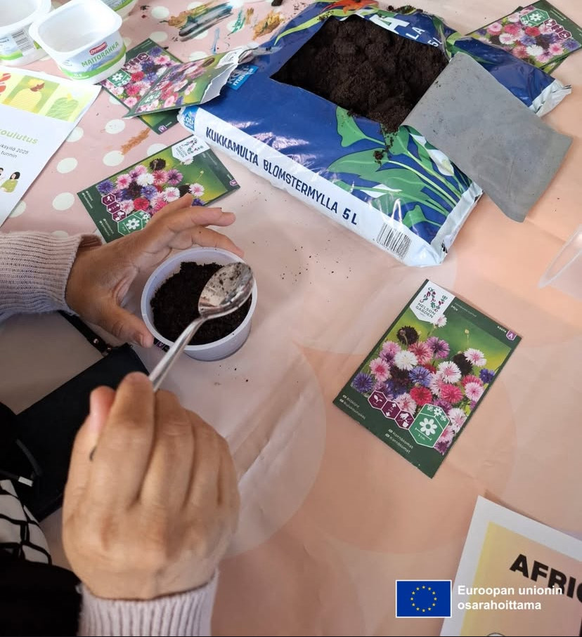 Kevään viimeisessä tapaamisessa juhlistimme kesän alkamista herkkujen äärellä ja istuttamalla yhdessä kesäkukkia. Tämä konkreettinen ja symbolinen hetki kuvasi hyvin koko ryhmän henkeä: yhdessä kasvamista, juurtumista ja osallisuuden vahvistumista.