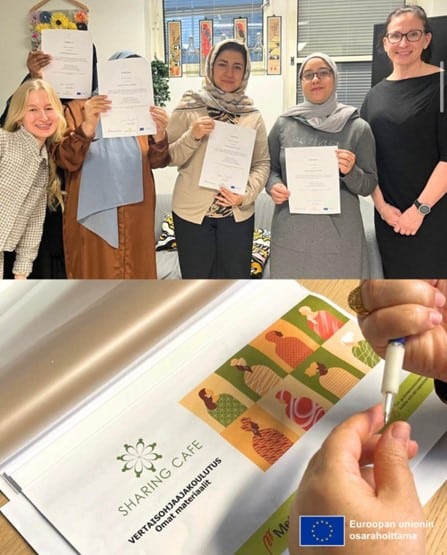 Ensimmäinen vertaisohjaajakoulutus päättyi lokakuun lopussa. Vertaisohjaajaksi kouluttautui 5 naista ja palaute koulutuksesta oli erittäin positiivista. Koulutuksen päättymistä juhlistettiin todistuksilla ja kakkukahveilla. Uusia innokkaita osallistujia on jo ilmoittautunut ja kouluttajat odottavatkin jo seuraavaan vertaisohjaajakoulutuksen aloittamista!