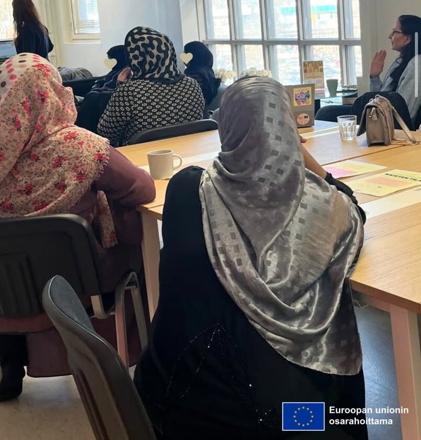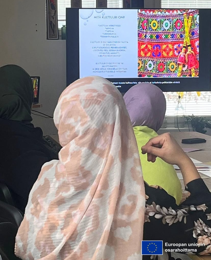 Seuraavaksi syvennyimme kulttuurin merkitykseen hyvinvoinnille ja terveydelle. Pohdimme, mitä kulttuuri pitää sisällään ja millaisia vaikutuksia uuteen maahan muuttamisella voi olla hyvinvointiin. Osallistujat jakoivat avoimesti kokemuksiaan Suomeen muutosta – mikä suomalaisessa kulttuurissa on tullut tärkeäksi ja mitä taas ikävöidään lähtömaasta.