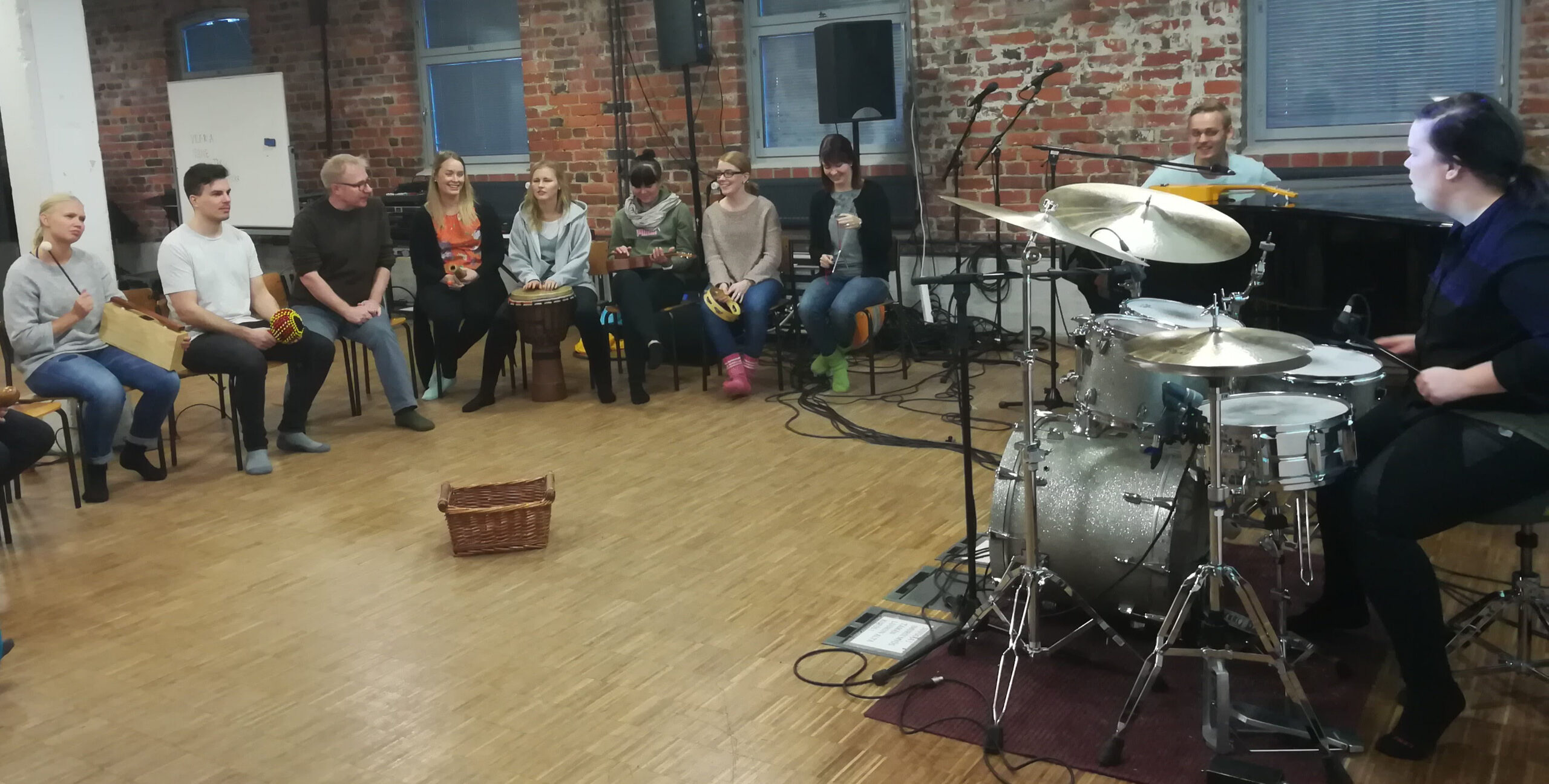 Opiskelijoille suunnattu koulutusjakso on pärähtänyt käyntiin! Tämä elämä -hanke järjestää koulutuksen, joka antaa valmiudet työpajojen pitämiseen Valterin Ruskis-koululla. Koululla on nuoria, joilla on jokin erityisen tuen tarve. Sinne saapuu myös muita 7. - 8.-luokkalaisia nuoria: Hyökkälän, Kannelmäen ja Laajasalon peruskoululaisia. Mukana on toki lisäksi opettajia ja opinto-ohjaajia, onhan kyseessä yläkoulujen opinto-ohjaukseen ja ilmiöoppimisen tueksi kehitettävä Tämä elämä -toimintakonsepti. Työpajoissa pakat sekoitetaan, herkin korvin tutustutetaan nuoret toisiinsa ja viedään heitä kohti omien ja toistensa vahvuuksien löytämään oppimista — musiikin, taiteen ja pelillisyyden keinoin. Kaiken kaikkiaan tähän mielenkiintoiseen nelipäiväiseen osallistuu 80 nuorta. Pilotti toteutetaan 30. - 31.1. ja 6. - 7.2.2018. Palataanpa vielä meneillään olevaan koulutusviikkoon: Mitä syntyy, kun yhdistetään osaavat, innokkaat, luovat, rohkeat musiikkipedagogiikan, sosiaalisen hyvinvoinnin ja erityispedagogiikan opiskelijat Metropoliasta ja Helsingin yliopistolta? No tietysti huippujengi, täydellinen combo! Meillä on porukka, joka tuo ennakkoluulottomasti osaamisensa monialaisen musiikki-erityispedagogiikka-peli -keitoksen raaka-aineeksi. Porukka, joka kehittää uteliaana pedagogisia taitojaan kasvussaan tulevaisuuden ammattilaiseksi. Tämä joukko on heittäytymässä rohkeasti sinne kuuluisaan kylmään veteen. Mutta lämpimin tekstiilein ja hyvin välinein varustettuina! Miksikö? Heidät on ryhmäytetty taidolla, viety pehmeästi mutta varmasti olennaisen äärelle: itsensä ja toisten kohtaamisen teemoihin. He ovat saaneet itse tekemällä todeta, miten jo yksinkertaisista kehorytmiikan ja elementti-improvisaation paloista rakennetaan soivaa musiikillista vuorovaikutusta. On pureuduttu nuorten kohtaamisen kysymyksiin ja oivallettu jälleen lisää oman aitouden tärkeydestä ja merkityksestä. Erityispedagogiikasta aiemmin tietämätön tietää jo vaikka mitä, kiitos taitavien erkkapeda-opiskelijoiden ja Valterin asiantuntijoiden! On annettu välineitä, kannustettu ajattelemaan, pohtimaan, uskomaan itseensä. Välikiitokset siis koko kouluttajatiimille, aivan huippua sekin! Eikä tämä tähän vielä lopu, homma jatkuu heti tällä viikolla! Irene Alsti-Lehtonen projektipäällikkö, Tämä elämä -hanke Metropolia Ammattikorkeakoulu