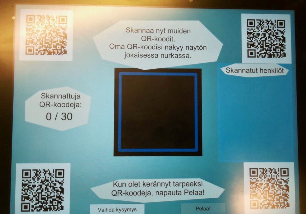 Kun japanilainen yhtiö Denso Wave kehitti QR- eli Quick Response -koodit autoteollisuuden käyttöön vuonna 1994, sillä tuskin oli mielessä, että samaa teknologiaa hyödynnettäisiin 25 vuotta myöhemmin suomalaisten yläkoulujen opinto-ohjauksessa. Mutta miksi Tämä elämä -hankkeessa kehitettävässä mobiilipelissä ollaan päädytty käyttämään juuri QR-koodeja? Vastauksen etsimiseksi on palattava lähtötilanteeseen: ensimmäisen pilottiversion valmisteluihin vuoden 2018 alkupuolelle. Tuolloin pelaajat vastailivat peliin ennalta laadittuihin kysymyksiin, jotka oli tallennettu Aalto-yliopiston palvelimelle. Palvelinta käyttämällä kysymyksiä pystyttiin tarvittaessa muuttamaan helposti ilman jokaisen laitteen ja sovelluksen päivittämistä erikseen. Ensimmäisen pilotin jälkeen haluttiin kuitenkin, että oppilaat voisivat keksiä peliin omia kysymyksiään. Tämäkin pystyttäisiin toteuttamaan palvelimen avulla: pelaajat laatisivat kysymykset laitteillaan, jonka jälkeen ne tallennettaisiin palvelimelle muiden noudettavaksi ja siten pelattavaksi. Aallon pelitiimissä alettiin kuitenkin pohtia pelin elinkaarta hankkeen päätyttyä. Kuka ylläpitäisi palvelinta, jos se jostain syystä ei enää toimisikaan huhtikuussa 2020? Myös muut käytännölliset seikat nousivat esiin. Koska peliä tultaisiin pelaamaan ensisijaisesti koulujen WiFi-verkoissa toimivilla tableteilla, saattaisivat verkon toimintahäiriöt estää pelaamisen mikäli pelin käyttö olisi vahvasti sidoksissa palvelimeen. Näistä syistä johtuen ja muita vaihtoehtoja (esim. Bluetooth-verkko) punnittaessa Aallon pelitiimissä päädyttiin käyttämään laitteiden väliseen tiedonsiirtoon QR-koodeja. QR-koodissa on riittävästi tallennuskapasiteettia, jotta sen välityksellä voidaan siirtää pelihahmon ulkoasun lisäksi oppilaiden laatimat kysymykset vastausvaihtoehtoineen. Käytännössä kaikissa nykyaikaisissa mobiililaitteissa on kamera, jonka avulla QR-koodin lukeminen onnistuu. QR-koodeihin perustuvan pelin ensitestaus Hyökkälän koulussa toukokuussa 2018 vaikutti lupaavalta kehityssuunnalta, joten pelin jatkokehityksen painopiste toista pilottia varten päätettiin kohdistaa tämän ryhmäpelin kehittämiseen. QR-koodien ja kameran käytön seurauksena peliin tuli puolivahingossa myös fyysinen ulottuvuus: paikallaan oleskelun sijaan pelaajat joutuvat liikkumaan luokassa hakiessaan kysymyksiä toisilta pelaajilta. "Oonko mä jo skannanut sun QR-koodin?" oli tyypillinen kysymys ryhmäpelin piloteissa. Skannaamiseen liittyvästä lievästä kaoottisuudesta huolimatta pelin fyysisestä ulottuvuudesta tuli loppujen lopuksi sosiaalisia taitoja korostava, varsin positiivinen asia. Japanilaisen autoteollisuuden teknologia on nyt valjastettu yläkoulujen opinto-ohjauksen käyttöön. Seuraavaksi on mietittävä kuinka siitä saadaan paras hyöty, jotta päästään kohti hankkeen keskeisiä tavoitteita. Esa Onttonen Yliopisto-opettaja Aalto-yliopisto, median laitos