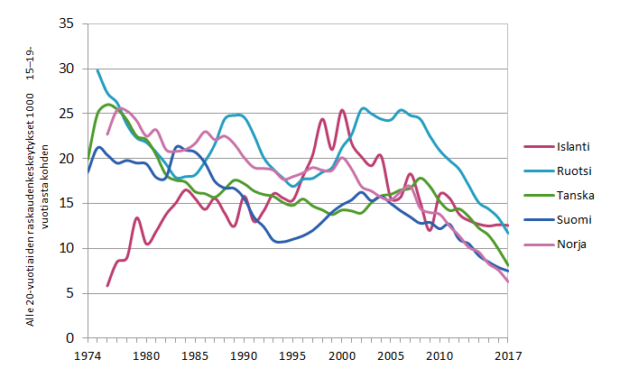 Hyvä uutinen on, että alle 20-vuotiaiden raskauden keskeytysten määrä on viime vuosina laskenut kaikissa Pohjoismaissa. Vähiten 15 ̶ 19-vuotiaiden keskeytyksiä tehdään Norjassa ja Suomessa (4).