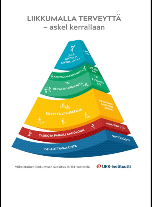 8 UKK-instituutti 2019a. 18-64-vuotiaiden aikuisten liikkumisen suositus. Verkkosivu. >https://www.ukkinstituutti.fi/liikkumisensuositus/aikuisten-liikkumisen-suositus<