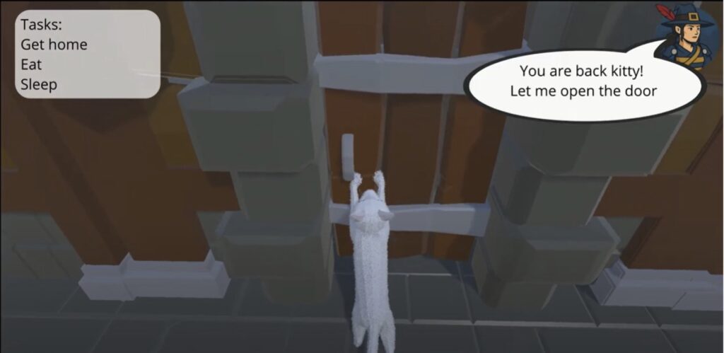 The twist? None of these reactions are scripted. They’re generated in real time using a large language model, meaning each play through is unique and emotionally rich. And the most impressive thing is that the player has no limits or boundaries! “Cat” can do whatever, and the AI will interpret the player’s actions itself.