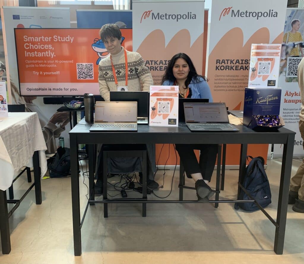 One of the stars of the day, OpintoHain uses GPT-4o and multi-agent workflows to recommend relevant courses to learners – whether they’re Metropolia students or lifelong learners from outside our university. Attendees were able to upload their CVs, define learning goals and receive curated learning paths in real time.