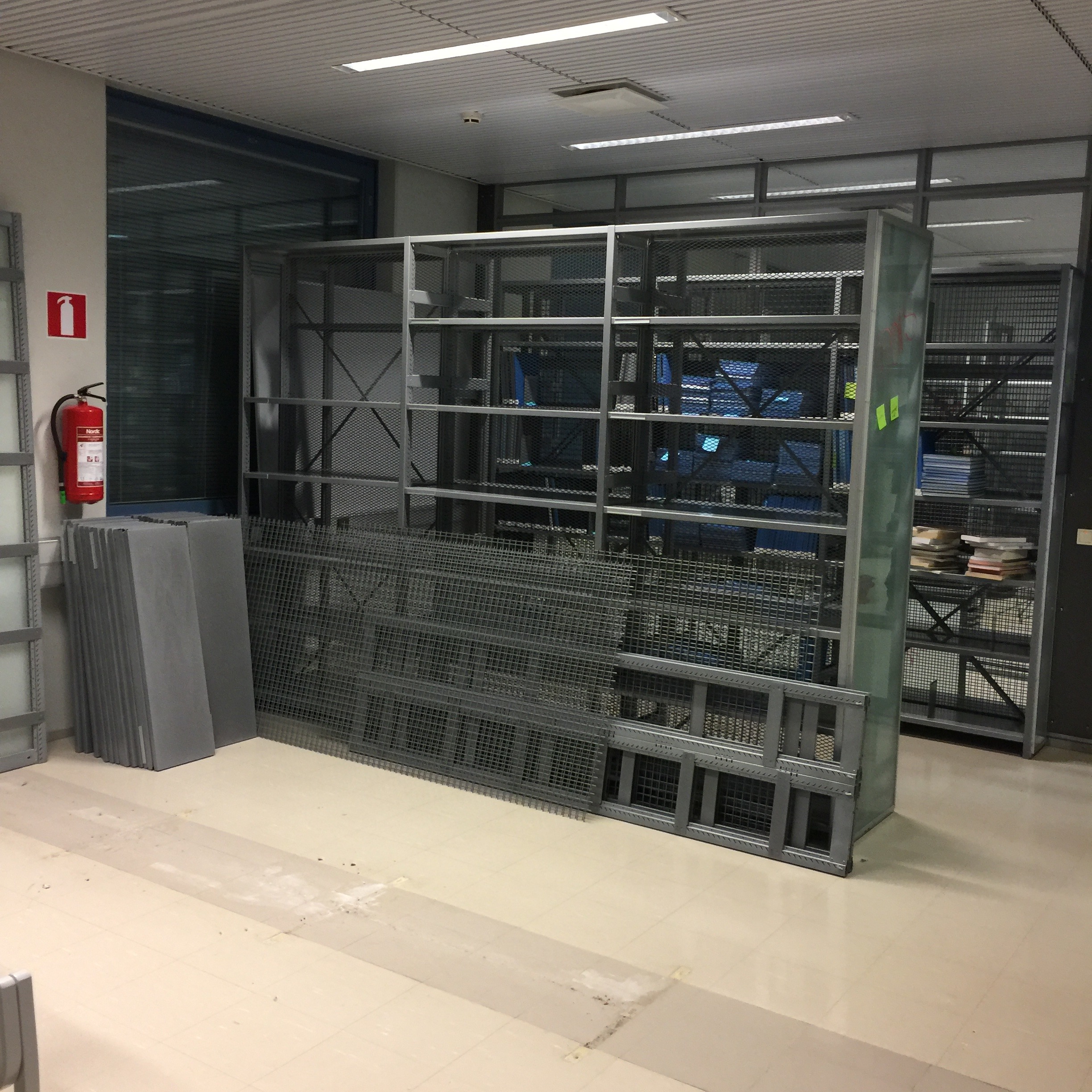 Hyllyjä on purettu ja kokoelmia tiivistetty, jotta kirjastoon on saatu hieman työskentelytilaa.