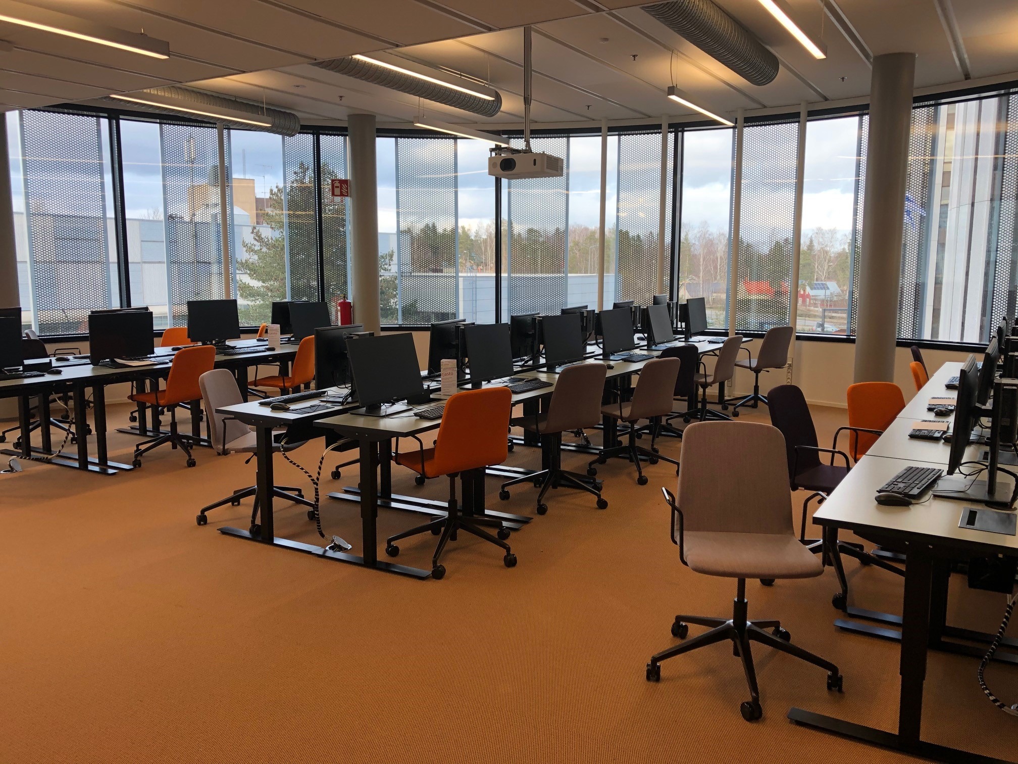 Digitilassa 32 konetta. Tilassa pidetään tiedonhankinnan ohjausta, muina aikoina siellä olevat koneet ovat vapaasti metropolialaisten käytössä.