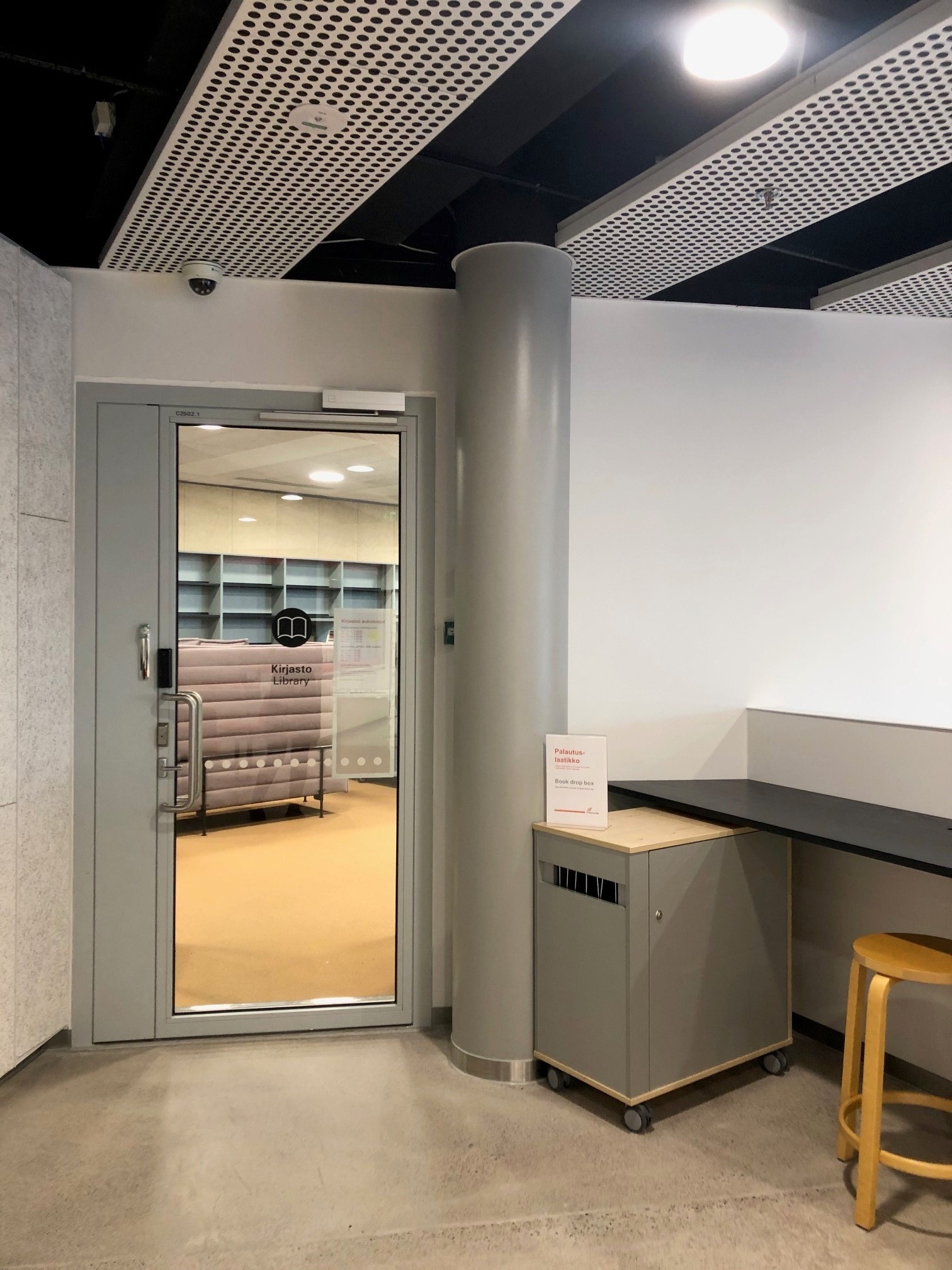 Omatoimiaikana kirjastoon kuljetaan C-talon puoleisen sisäänkäynnin kautta.
