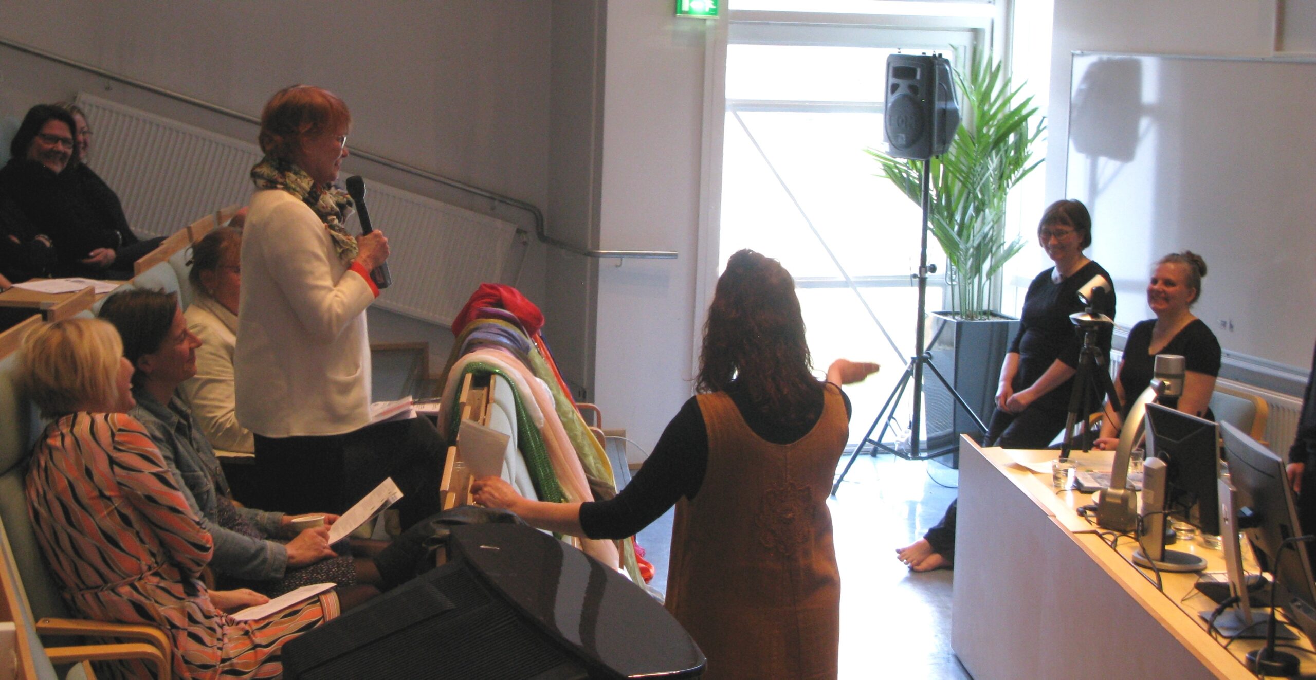 Hankkeessa koettuja kokemuksia, ratkaisuja ja tuloksia käytiin seminaarissa läpi tarinateatterin menetelmin. Hankkeen asiantuntijoiden ja yrittäjien kommenttipuheenvuorot esitettiin yhteistyössä Helsingin Tarinateatterin kanssa.
