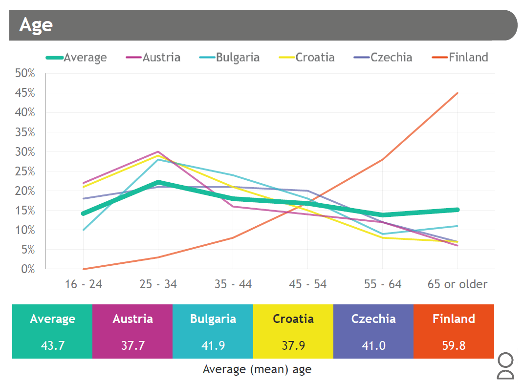 Kansainvälisen näkökulman kautta nähtynä juuri ikä teki suomalaista yleisöstä erityisen kiinnostavan. Muissa tutkimuksessa olevissa maissa tyypillinen kävijä on alle 25-35 -vuotias. Samalla yleisön keski-ikä lähti laskemaan 35 vuoden jälkeen, juuri silloin kun suomalainen yleisö vasta vakiintui ja lisäsi teatterissa käyntiään.