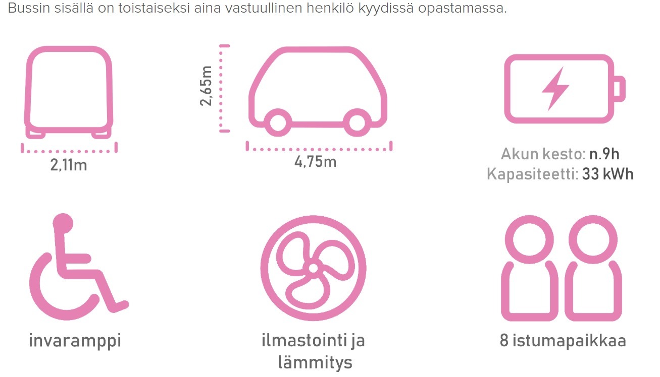 Robottibusseja eli itsestään ajavia pikkubusseja on tutkittu vaihtoehtona joukkoliikenteen syöttämiseksi runkolinjojen solmukohdissa. Robottibussit voisivat olla ratkaisu joukkoliikenteen palvelutason ja kattavuuden parantamiseksi. Suurin tarve on alueilla, joilla joukkoliikenne on ollut perinteisin menetelmin hankalaa tai kallista toteuttaa. Robottibussien nykyinen teknologia ei kuitenkaan ole tavoitteeseen nähden riittävän kehittynyttä. Kulkunopeus ja muun liikenteen huomioimiskyky eivät riitä muun liikenteen seassa liikkumiseen. Robottibusseja varten pitäisi muuttaa liikennejärjestelyjä muuta liikennettä haittaavalla tavalla. Helsingissä syöttöliikenne runkolinjojen liikennevälineisiin on jo melko hyvin täytetty muilla kulkuvälineillä. Tämä vaikeuttaa robottibussien laajaa käyttöönottoa tulevaisuudessa. Jotta suuria muutoksia nykyisiin järjestelyihin kannattaisi tehdä, pitäisi robottibussin tarjota helpompi, edullisempi ja ympäristöystävällisempi tapa liikkua. Julkisten liikennevälineiden käyttökustannuksista noin puolet koostuu palkkakuluista. Siksi palvelua ei voida tarjota joka reitille kellon ympäri. Tästä näkökulmasta julkisen liikenteen palvelutasoa ja kattavuutta on mahdollista parantaa itseajavilla liikennevälineillä. Robottibussien käytettävyyden tutkimista kannattaa siis myös tulevaisuudessa jatkaa. Kokemuksia robottibussien kokeiluista Robottibusseja testattiin ensimmäisen kerran Suomen tieliikenteessä muiden ajoneuvojen seassa Metropolia Ammattikorkeakoulun koordinoimassa SOHJOA-hankkeessa. Kun kyseessä oli ensimmäinen kerta, kun robottibussi kulki muun ajoneuvoliikenteen seassa, ei ympäristöltä tai reitiltä oltu vaatimassa mitään mullistavaa. Kokeilut lähtivät liikkeelle kesällä 2016 Hernesaaresta. Ranskalaisvalmisteinen Easymile EZ10 -robottibussi kulki suoraa tienpätkää Löylyltä Hernesaarenrannan kesäpäivänviettoalueelle. Reitti ei varsinaisesti vastannut todettuun liikkumistarpeeseen, mutta tarjosi otollisen aitiopaikan älyliikenteen demoamiseen. Loppuvuodesta 2016 robottibussi suuntasi Espoon Otaniemeen ja Tampereen Teknillisen Yliopiston kampusalueelle Hervantaan. Otaniemessä bussin oli tarkoitus päästä kulkemaan lähelle valmistuvaa Otaniemen metroasemaa aikomuksena kokeilla varsinaista syöttöliikennettä. Kuinka ollakaan, Länsimetron rakentaminen viivästyi eikä metroasema vielä tuohon aikaan ollut toiminnassa. Otaniemeen palattiin pilottimielessä samalle reitille taas syksyllä 2017, jolloin metroasema oli toiminnassa. Aikaisemmin oli kuitenkin todettu, että metroaseman lähelle pääseminen oli teknisesti haastavaa ja olisi edellyttänyt huomattavia, muuta liikennettä liikaa haittaavia järjestelyjä. Todellista syöttöliikennettä robottibussin hoitamana ei siis päästy kokeilemaan. Tampereen Teknillisen Yliopiston kampusalueella robottibussia testattiin reitillä, joka kulki osittain huoltotiellä sekä osittain jalankulkijoiden ja pyöräilijöiden seassa. Tässä kokeilussa saatiin arvokasta tietoa siitä, miten robottibussi toimisi tällaisessa ympäristössä. Hervannassa todettiin, että operointinopeuden (noin 12 km/h) osalta robottibussi sopisi tällä hetkellä hyvin kulkemaan jalankulkijoiden ja pyöräilijöiden sekaan. Usein ei kuitenkaan ole järkevää rajoittaa jalankulkijoiden ja pyöräilijöiden oikeuksia kulkea heille suunnitelluilla väylillä. Lisäksi, tällaisissa paikoissa olisi väylän kapeuden takia hankala liikennöidä useammalla kuin yhdellä bussilla, joten voitaisiinko silloin täyttää kunnolla liikkumistarve harvalla vuorovälillä (reitin pituudesta riippuen). Kun soppaan lisätään vielä kaupunkien liikkumisstrategiat mikä esimerkiksi Helsingin kohdalla on kävelyn ja pyöräilyn suosiminen ennen joukkoliikennettä ja varsinkin yksityisautoilua, voidaan kai todeta, ettei robottibussin käyttöä kevyen liikenteen väylillä voi suositella, vaikkakin tämä saattaisi jossain tapauksissa luoda uusia mahdollisuuksia matkaketjuihin sekä reitteihin. Parempi paikka robottibussille on siis tieliikenne, jossa se liikkuu muiden ajoneuvojen seassa. Reittisuunnittelun haasteita Robottibussien reittisuunnittelun suhteen on toistaiseksi täytynyt tasapainoilla muun muassa bussin teknisen kyvykkyyden, soveltuvien ympäristöjen, tavoitettavuuden ja sen suhteen, että reitissä olisi jotain järkeä - saataisiin vastattua jollain tasolla todettuun liikkumistarpeeseen. HSL on tunnistanut reittejä Helsingissä, joissa voisi olla kysyntää robottibusseille. Nämä ovat kuitenkin olleet reittejä, joita ei SOHJOA-hankkeessa käytetyllä EZ10-robottibussilla eikä muillakaan tällä hetkellä julkisesti markkinoilla olevilla automaattibusseilla voi toteuttaa. Robottibussien tekniset ominaisuudet eivät ole sillä tasolla, mitä tieliikenteessä ja muiden ajoneuvojen seassa järkevästi liikkumiseen vaadittaisiin, jonka lisäksi niissä on oltava vielä vastuullinen matkustaja, operaattori, fyysisesti kyydissä (teknisistä rajoitteista johtuen). Tieliikennekokeiluja ajatellen nykytekniikalla toteutetuille robottibusseille on todella vaikea löytää sopivia reittejä, jossa ne kulkevat muun ajoneuvoliikenteen seassa. Ideaalisin operointialue SOHJOA-hankkeessa käytetyille robottibusseille olisikin suljettu alue kuten lentokenttä, teollisuusalue, kampusalue tai erilaiset tapahtumat, jossa bussilla korvattaisiin normaalisti kävellen tehtäviä matkoja ilman merkittävää integroimista matkaketjuihin. Tieliikenteessä bussilla ei ole tällä hetkellä edellytyksiä operoida järkevästi - riittävällä nopeudella ja kunnolla tarpeeseen vastaavalla tavalla. Rauhalliset taajama-alueet, joissa nopeusrajoitus on maksimissaan 40 km/h ja joissa kulkee tavanomaisia joukkoliikenteen busseja on todettu olevan osittain hyvin robottibussille sopivia ympäristöjä. Näillä alueilla kadunvarsipysäköinti on usein kielletty tai tiet ovat muuten leveitä, jotta linja-a