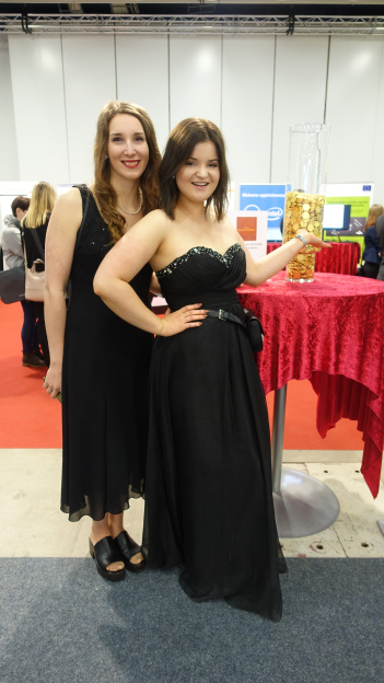Messupäivät sujuivat ilman isoja ongelmia, mutta osasimme odottaa pieniä kommelluksia emmekä halunneet sitoa tästä syystä itseämme mihinkään tiettyihin työtehtäviin. Toimimme pitkälti TerveysCasinon promoottoreina ja hoidimme juoksevia asioita. Kiertely messuhallissa iltapuvuissa suklaakultakolikoita jakaen houkutteli lisäkävijöitä osastollemme.