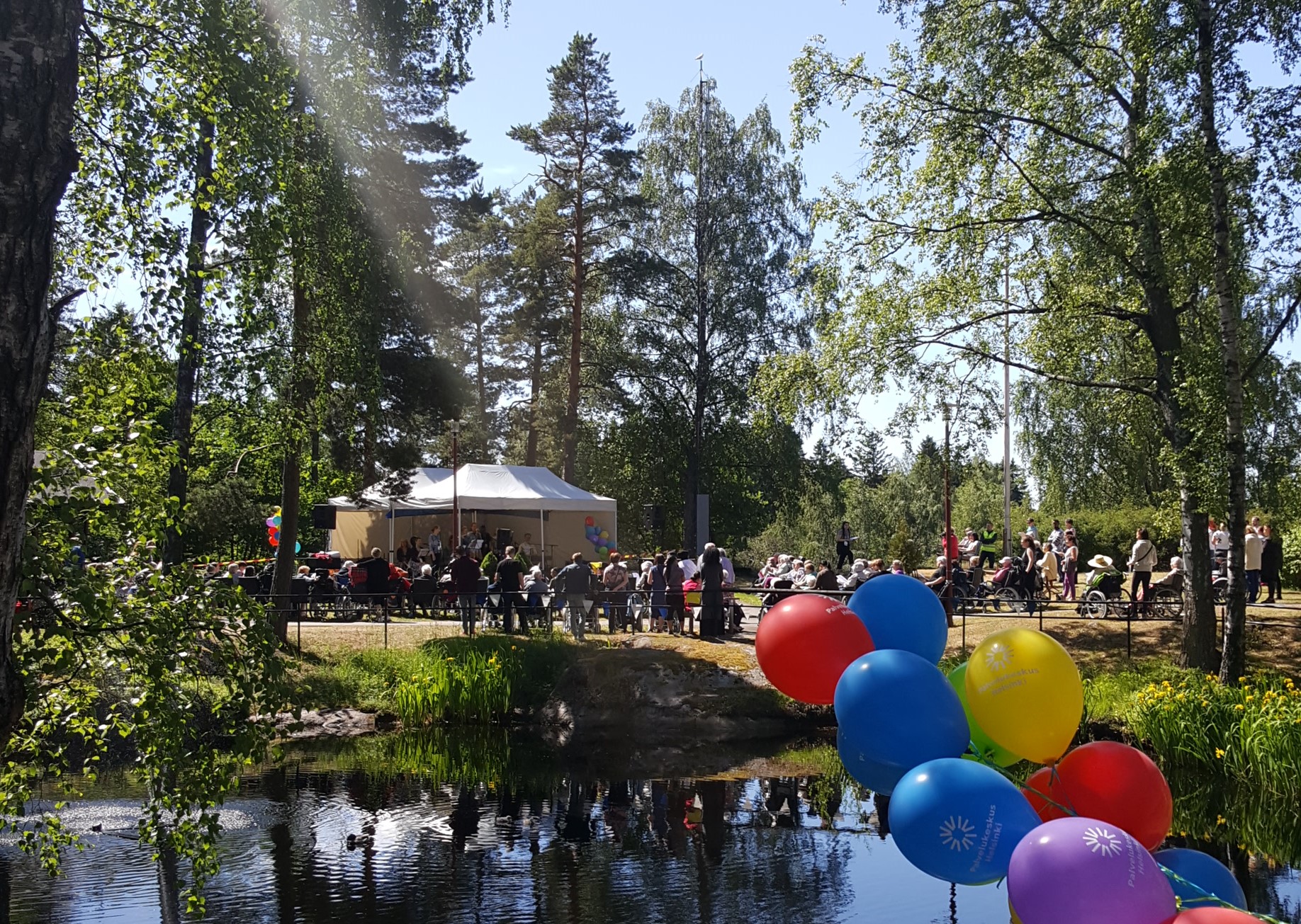 Meidän tehtävämme päivän aikana oli huolehtia tapahtuma päälavan toiminnasta ja kaikesta siihen liittyvästä. Tapahtuma oli suunnattu Kustaankartanon palvelukeskuksen asukkaille, heidän sukulaisilleen ja lähialueen ihmisille. Paikalle saapui paljon lapsiperheitä ja vanhempaa ikäpolvea. Yllätyin miten sankoin joukoin ihmisiä saapui paikalle, mutta selkeästi tiedotus oli toiminut ja esiintyjät olivat tavoittaneet kohdeyleisön.