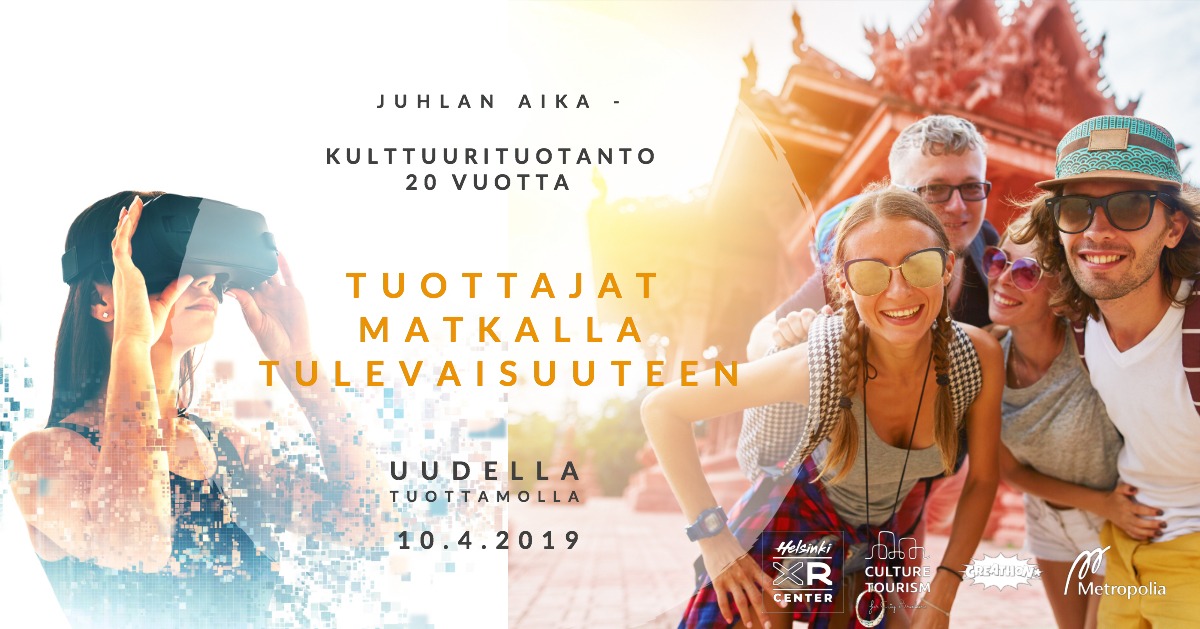Kuva: Tiia Keskisen taittamaa mainosmateriaalia käytettiin mm. sosiaalisen median mainoksissa. Lähdin tuottamaa tapahtumaa Tuottajat Matkalla tulevaisuuteen yhtenä itsenäisenä projektina. Sain työparikseni alemman vuosiryhmän opiskelijan Tiia Keskisen ja aloimme yhdessä suunnittelemaan tapahtuman sisältöä. Tiian kanssa kaikki sujui hienosti ja löysimme nopeasti yhteisen sävelen. Tapahtuma järjestettiin uudessa Arabianrannan kampuksessa ja päivään mahtui paljon ohjelmaa ja tekijöitä. Helsinki XR Center, Culture Tourism for City Breakers (CTCB), sekä Creathon olivat kaikki suunnitelleet omaa ohjelmaa päivän sisälle. Johtavana teemana päivää hallitsi tulevaisuudennäkymät esimerkiksi tuottajien ammattikentällä. Aluksi olikin vaikeaa ja samalla hyvin tärkeää hahmottaa kokonaisuus tapahtumalle; kuka, mitä, missä ja milloin? Meillä oli melko vapaat kädet Tiian kanssa pohtia, mitä haluaisimme tuoda päivään. Päädyimme toteuttamaan paneelikeskustelun, johon saimme mukaan kulttuurituotannon alumnit, sekä Kulta Ry:n pääsihteerin Rosa Meriläisen. Paneelikeskustelu itsessään meni loistavasti, josta suuri kiitos kuului paneelinvetäjälle, joka sai pidettyä keskustelun aikataulussa. Ja vaikka itse sanonkin, niin kyseessä oli yksi parhaista paneelikeskusteluista, jossa olen itse ollut osallisena eli hyvä Tiia ja minä! Paneelikeskustelun jälkeen luvassa oli iltajuhlat Tuottamon tiloissa ja jatkot legendaarisessa ravintola Mustassa Härässä. Näin jälkikäteen pohtien, projekti antoi paljon oppia ja vahvisti jo asioita mitkä minulla oli tiedossa; ei ole tyhmiä kysymyksiä, selkeä tehtävänjako alusta asti tiimin kesken, mieluummin ajoissa, kun liian myöhään, kisakunto on tärkeä pitää hyvänä alusta loppuun (projekti starttasi joulukuussa ja tapahtuma oli huhtikuussa) ja kaikki asiat on hyvä tarkistaa vähintään kolmeen kertaan ennen tapahtumaa. Sami Kutu 17