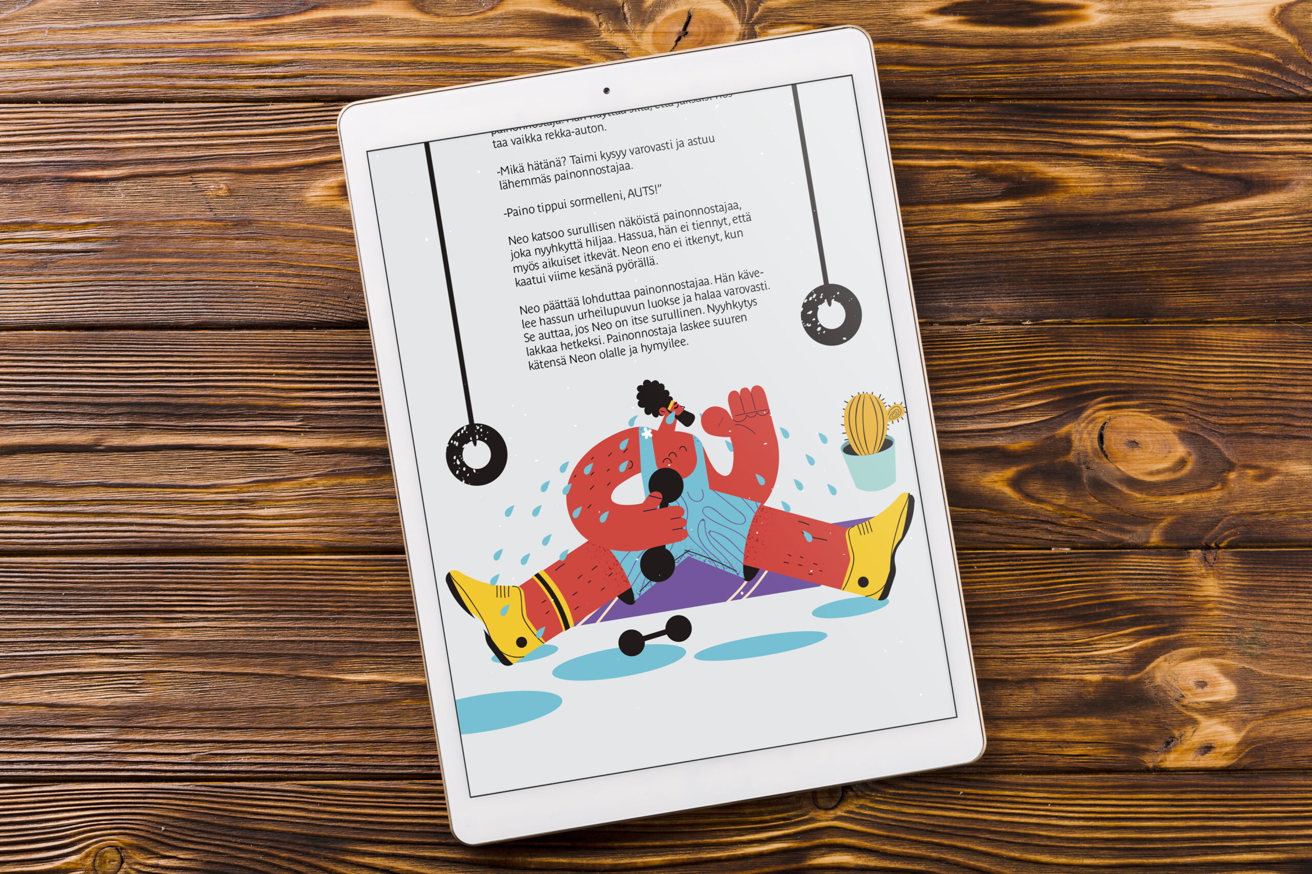 Projekti kuitenkin viivästyi. Elämä tuli väliin ja Covid-19 pandemia repi toisiamme eri suuntiin. Kuvittajan elämäntilanne muuttui ja hän joutui hyppäämään pois junasta. Hain Koneen Säätiöltä työskentelyapurahaa uudelle kuvittajalle mutta apurahoja ei sillä kertaa saatu. Piti laatia uusi suunnitelma kirjan toteuttamiseen. Aiemman käsin piirretyn menetelmän sijasta, päätimme toteuttaa kuvituksen vektorigrafiikkana joka onnistui myös minulta.