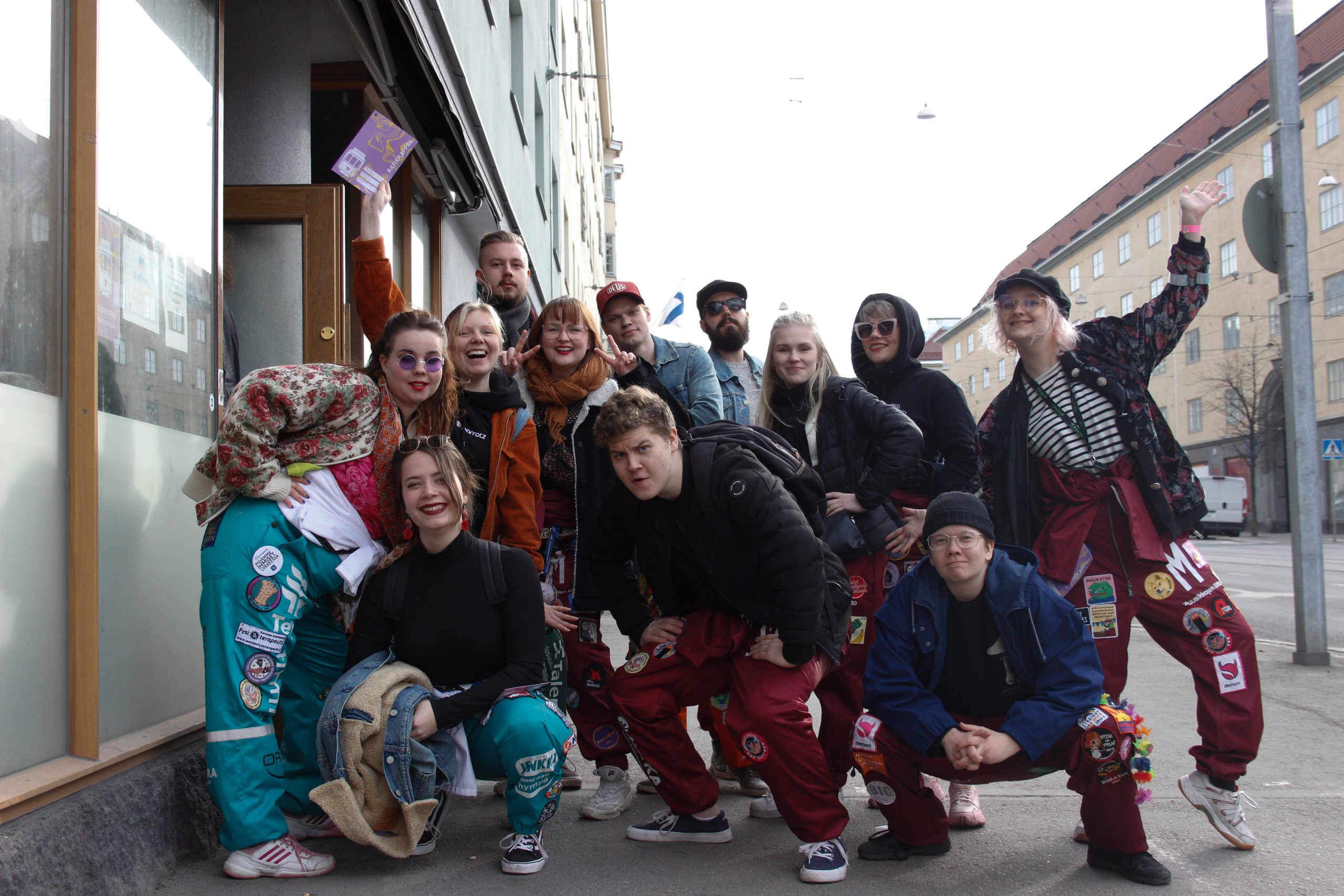 Arabian katufestivaali lienee monelle helsinkiläiselle vähintään nimellisesti tuttu. Koko perheelle suunnattu festari järjestetään vuosittain Toukolan kaupunginosassa, jonne se kerää nähtävää ja tehtävää eri alojen toimijoilta, esiintyjiltä, taiteilijoilta ja artisteilta. Alunperin alueella järjestetystä kierrätystapahtumasta Suomen suurimmaksi katutaidefestivaaliksi kasvaneen juhlan perusidea on edelleen yhteisöllisyyden ja mukavan yhdessä olon edistäminen. Festivaalin takana toimii Artova ry, eli Arabianranta-Toukola-Vanhakaupunki kulttuuri- ja kaupunginosayhdistys ry. Olin mukana tuottamassa festivaalia keväällä 2022, kun kahden pandemiasta johtuvan digitaalisen vuoden jälkeen tapahtuma päästiin jälleen järjestämään livenä. Toukokuun puolessa välissä pidettävän festarin tuotanto pyöräytettiin käyntiin helmikuussa. Tuotantotiimimme oli tänä vuonna puolet pienempi kuin tavallisesti. Siinä missä aiempina vuosina jokaista osa-aluetta hoitamassa on ollut työpari, yksi tuottaja oli nyt vastuussa omasta tontistaan. Olin itse vastuussa festivaalin taide- ja työpajaohjelmasta. Meillä oli ihan huippuporukka. Jokainen hoiti oman osuutensa ammattimaisesti ja kunnialla alusta loppuun. Töitä tehtiin pääosin etänä, ja festarin parissa työskentely olikin hyvin itsenäistä ja omaehtoista. Yhteyttä tiimin kesken pidettiin tiiviisti. Apua ja tukea vastaavilta tuottajilta sai aina tarvittaessa. Helmi- ja maaliskuu käytettiin pitkälti ohjelman kasaamiseen. Omalla kohdallani tämä tarkoitti avoimen haun avaamista työpajoja varten, taiteilijoiden lähestymistä sekä yhteistyö- ja sponsoritahojen kontaktointia. Huhtikuussa ohjelma lyötiin lukkoon ja festarialue hahmoteltiin kartalle. Tein tässä vaiheessa paljon hommia etenkin taideteosten eteen, jotta niiden sijoittelu alueelle olisi mahdollisimman toimivaa ja ylipäätään mahdollista. Festivaalin lähestyessä toukokuussa meno oli jo melko haipakkaa. Lisääntyneiden palaverien myötä oli mukavaa nähdä työkavereita useammin kasvokkain ja vaihtaa ajatuksia siitä mitä on meneillään. Festivaalipäivän aamuna huolet luvatusta sateesta kaikkosivat tummien pilvien antaessa tilaa auringolle, ja Arabianmäen kirsikankukat aukesivat kuin tilauksesta koristamaan aluetta. Viimeinen jännitysnäytelmä omalla kohdallani oli, kun alueelle toteutettu AR-teos ei ottanut toimiakseen vielä muutamaa tuntia ennen festivaalin alkua. Asia saatiin kuitenkin korjattua, ja pystyin hengittämään vapaasti kun ihmiset alkoivat valua alueelle. Kuusituntinen tapahtuma tuntui lipuvan ohi hujauksessa. Välillä piti muistuttaa itseä siitä, että fiilistelee menoa ja meininkiä kaiken juoksemisen ohessa. Väkeä ja tunnelmaa riitti, ja ihmiset tuntuivat toden teolla nauttivan livetapahtumasta pitkän tauon jälkeen! Arabian katufestivaalin tuottaminen oli todella opettavainen kokemus. Koska työryhmä on pieni, saa tekemisessä kosketuspintaa tapahtumatuotannon jokaiseen osa-alueeseen aivan eri tavalla, kuin isommassa tapahtumassa. Tuottajilla on myös hyvin pitkälti vapaat kädet ohjelman tuottamisessa, mikä edellyttää vastuunkantoa ja omien hoksottimien käyttöä. Ekologisuutta painottavat arvot pakottavat innovatiivisuuteen ja uusien työskentelytapojen löytämiseen. Festivaalin parissa työskenteleminen kasvatti ammatillista itsevarmuuttani ja antoi paljon oppeja tulevaan.