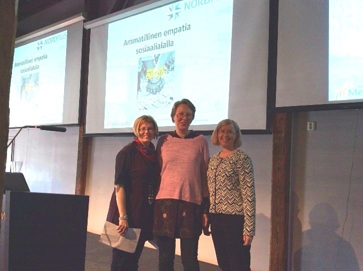lehtorit Metropoliasta Leigh Anne Rauhala (vas.), Seija Mäenpää ja Eija Raatikainen (oik.) Talentian asiantuntijapäivillä 15.3.2017